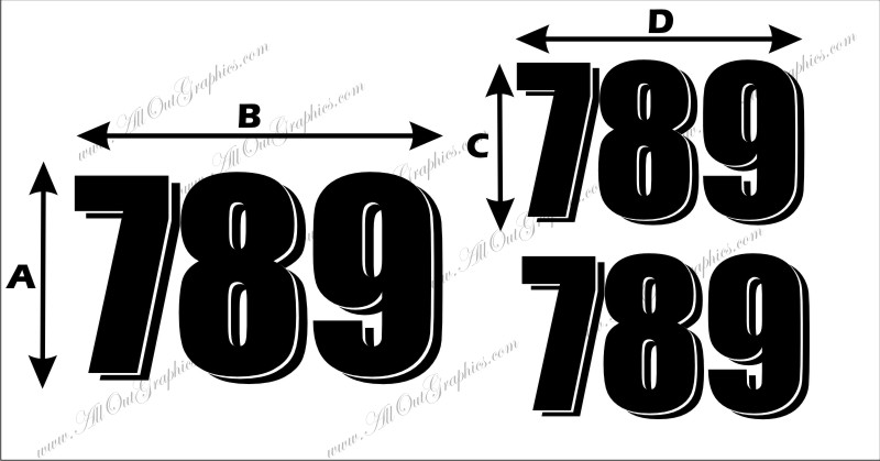 Shadow Style Motorcycle Race Numbers vinyl die cut decals easy to apply 1 front decal and 2 side decals You can specific the exact sizes for all the decals Choose the size for the front and rear decals you specify the measurement for each section above